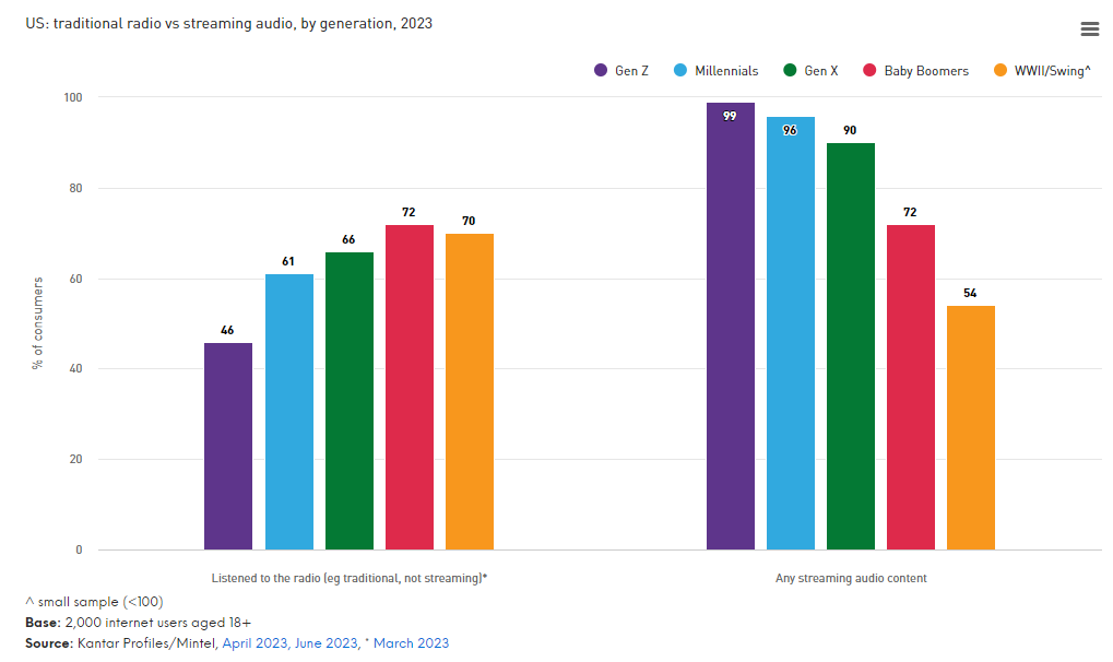 Both Gen Z & Millennials stream and listen to traditional radio.