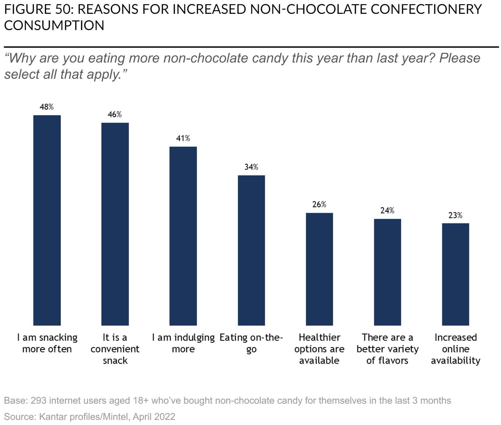 Our research shows that familiarity is the highest factor to purchase decisions for those that purchase in the non-chocolate confectionery.